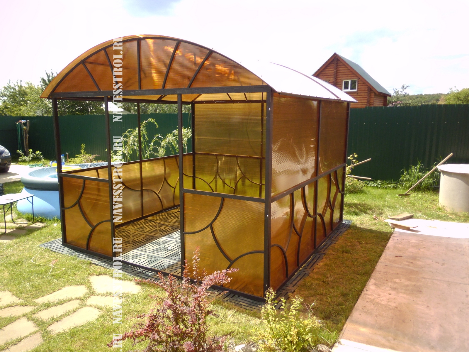 За день на даче изготовили арочный навес 5 на 7 с покрытием поликарбоната. Привезли уже готовые крашенные фермы и весь остальной материал. Все за собой убрали и увезли мусор. Молодцы!